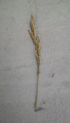 この穂を紹介します。田植え長靴に絡まっていた穂ですが、ほ場にある穂は、お金をかけているだけあり、流石にリッパでした。