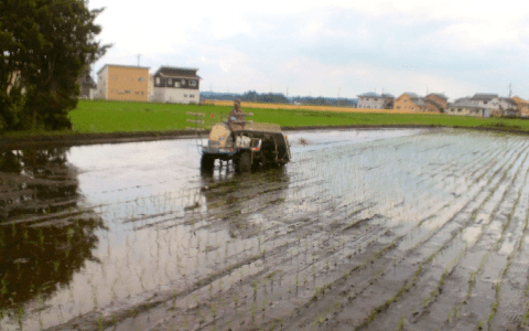 今回、田植えの様子、そして、田植え直後のほ場の様子を紹介します。