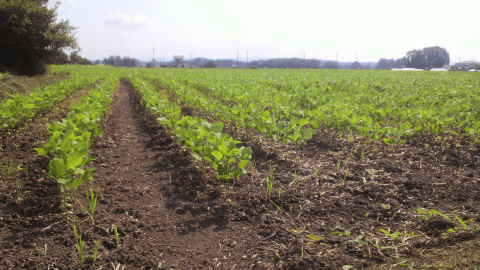 後々のことを思うと、大豆の背丈がある程度、低い時期にガッチリと培土したほうが良さそうです。